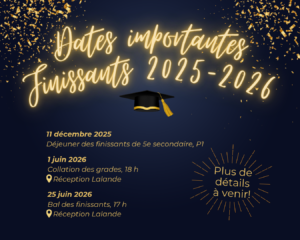 Bal des finissants: 25 juin 2026 à la salle de réception Lalande.